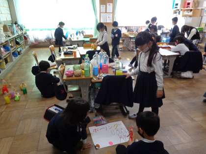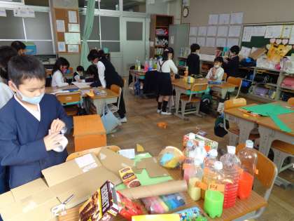 生活科の授業です。錦綾っ子まつりに向けて準備を進めました。