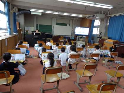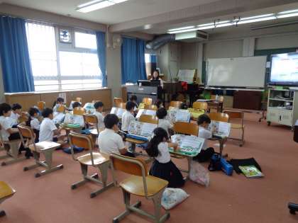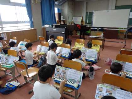音楽の授業です。今まで学習した曲を鍵盤ハーモニカで練習しました。
