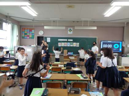 外国語活動の授業です。What _ do you like?についてゲームを通して学習しました。
