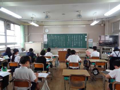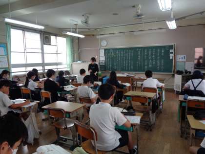 国語の授業です。「情報と情報をつなげて伝えるとき」の学習で、文章の書き方を練習しました。