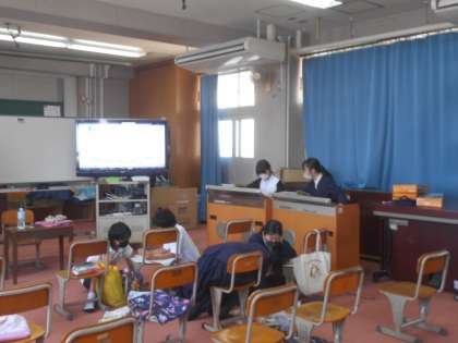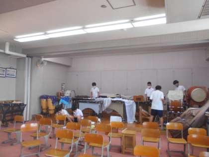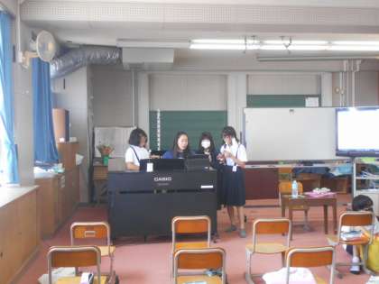 音楽の授業です。パート別に分かれて、「合奏」の練習をしています。
