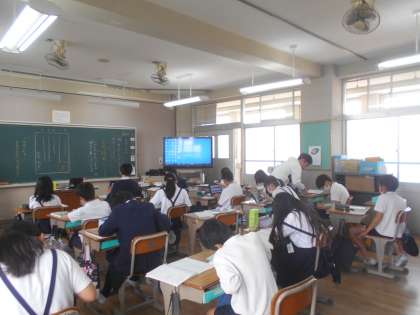 国語の授業です。「楽しみは」をテーマに、「短歌」を読んでいます。