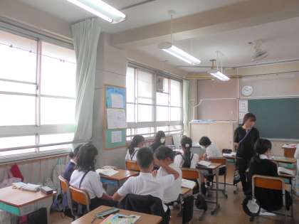 国語の授業です。「みんなが過ごしやすい学校」をテーマに「提案文」を書くため、身のまわりにある課題について、グループで話し合っています。