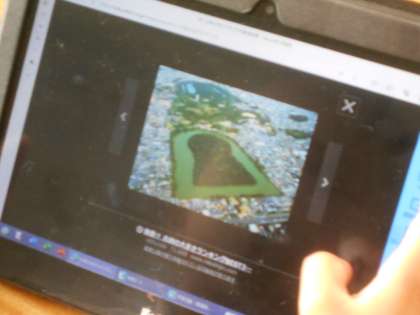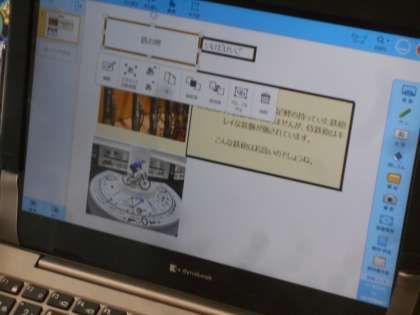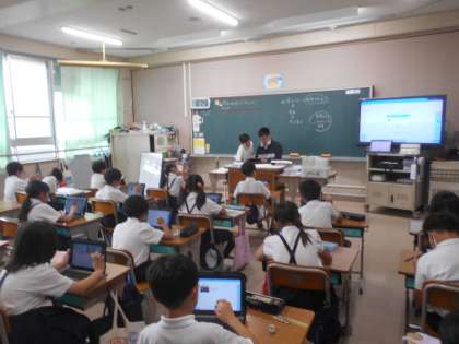 社会の授業です。堺市の歴史や文化、伝統産業について、タブレットで調べています。