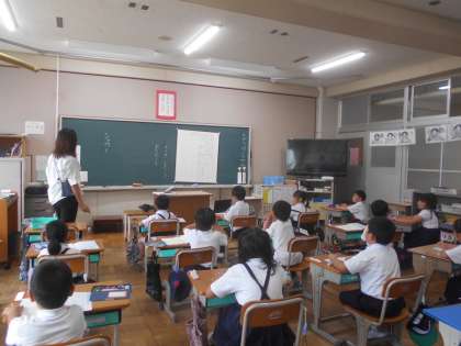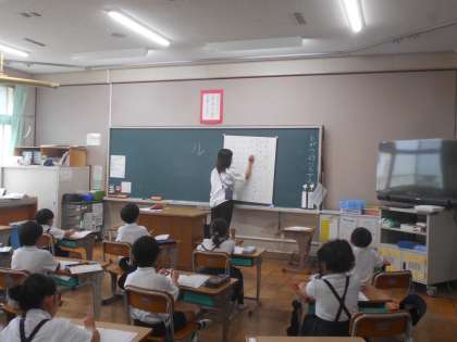 国語の授業です。今日、初めて入ったプールの感想を書いています。
