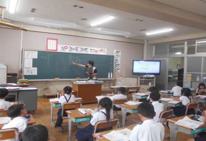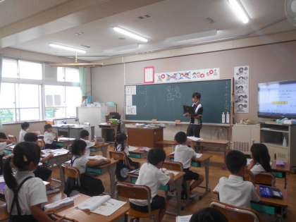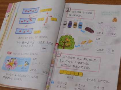 算数の授業です。「ひき算」を式に表し、計算をしています。