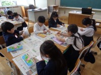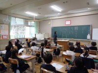 浅香山小学校の栄養教諭の先生から、「野菜のひみつ」について、教えてもらっています。