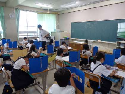 国語の授業です。ミリーのすてきなぼうしのテストをしました。