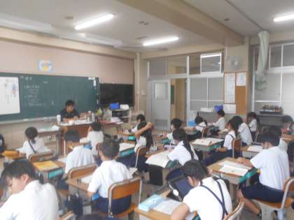 社会の授業です。先日見学に行った「堺伝匠館」や「線香工場」で、知ったことや学んだことをまとめています。