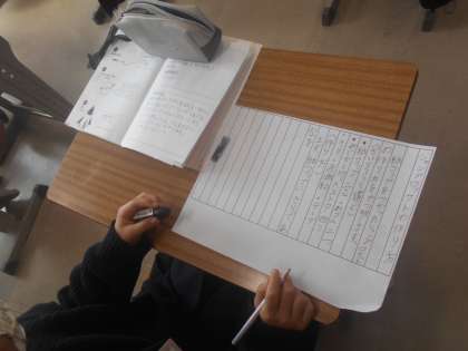 国語の授業です。自分でつくった「ジャンプロケット」の作り方について、「説明文」を書いています。