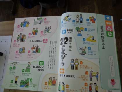 道徳の授業です。1年間で学ぶ内容について先生から説明がありました。