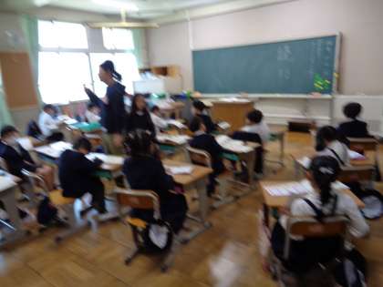 体育と国語の授業の様子です。漢字の勉強や竹馬、一輪車などに乗っています。