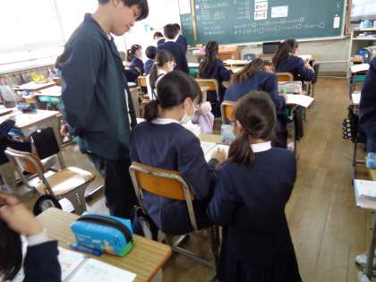 算数の授業です。学び合う活動を通して、小数をいろいろな形で表す学習をしました。