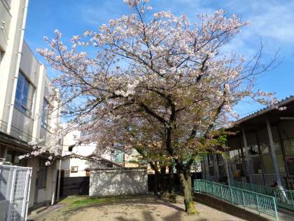 晴天の暖かい朝になりました。のびのびルーム前の桜は、葉が出てきて、花が散り始めています。今日で最初の1週間が終わりとなります。
