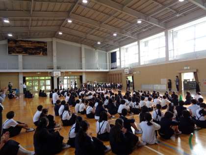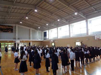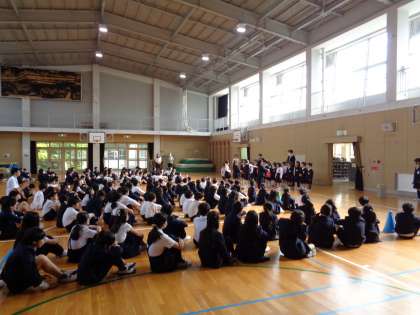 月曜日の朝礼の時間を使い、1年生のお迎え会をしました。始業式も含め、これまでは1年生は教室での学習をしてきましたが、これからは上級生と一緒の活動も増えていきます。上級生からの歓迎の言葉や1年生からのあいさつなどを行いました。