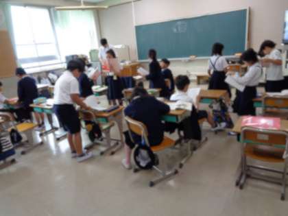 日記を書いています。それを、仲間と読み比べて、感想を伝えています。