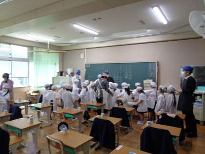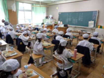 今日から1年生も給食が始まりました。給食当番の役割もしています。時間はかかりますが、ゆっくり見守り、安全な給食をめざしていきます。