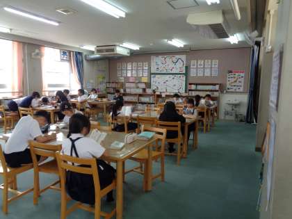 図書の授業です。読みたい本を選んで、集中して読んでいます。