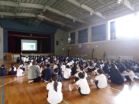 1年生を迎える会がありました。拍手で1年生を迎えて,代表委員から1年生への言葉が...