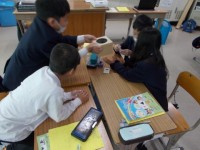 外国語の授業では,色や形の伝え方の勉強をしています。この日は,ボックスの中にある...