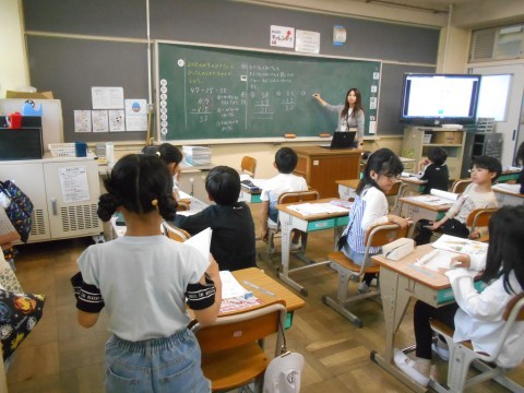 こちらは算数の時間です。手を挙げて発表する意欲がすてきでした♪