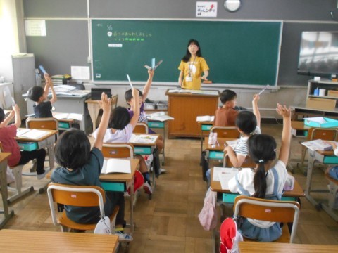 2年生の算数の時間。今日は長さの単位について学習していました。
