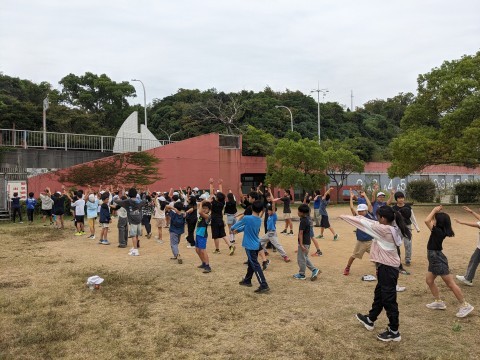 堺っ子体操を踊った後、臨海学習の目標「きまりや切り替えを大切にして、楽しく学べる最高の臨海学校にしよう」を確認しました。一日目に引き続き、自分たちが立てた目標を達成してもらいたいです。