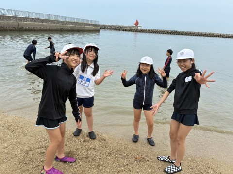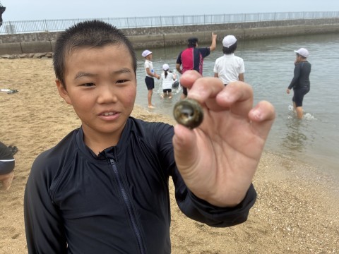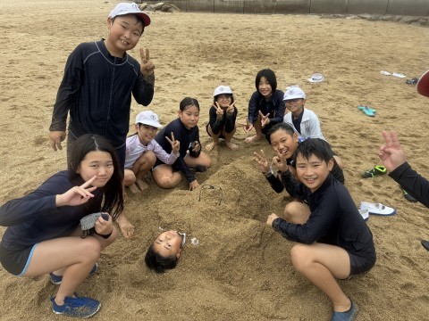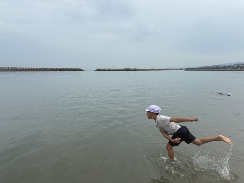 浜辺では水切りや砂遊びなど、たくさんの遊びを考えて活動しています。とっても楽しそうです。