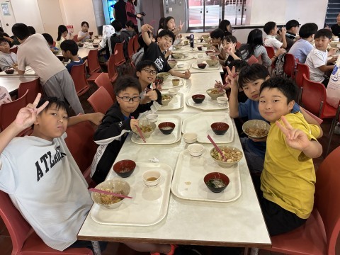 臨海学習最後の食事です。海の活動の後なので今回もたくさん食べていました。