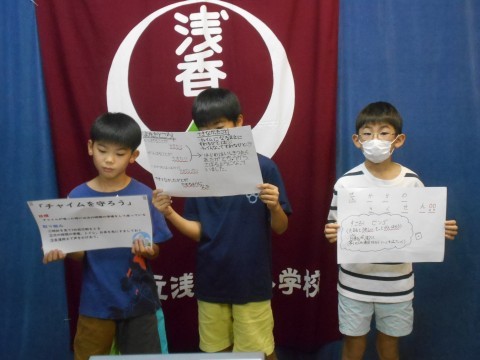 4年生の各クラスが生活目標の実現に向けて取り組んでいることを発表しました。グラフで分かりやすく説明したり,楽しんで取り組む方法を紹介してくれたりと素敵な発表でした。