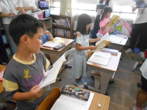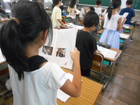 一人読みです。今日の授業で取り扱う部分を音読しています。