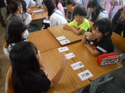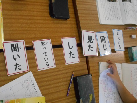 グループ活動が始まりました。カードが各班に配られ,活用して話し合いが行われています。