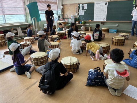 開会式が終わり、ワールドハッキョが始まりました。さっそくプクという太鼓を体験しています。