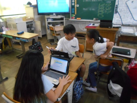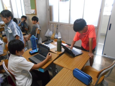 総合の時間です。パソコンでプレゼンテーション資料を作成していました。