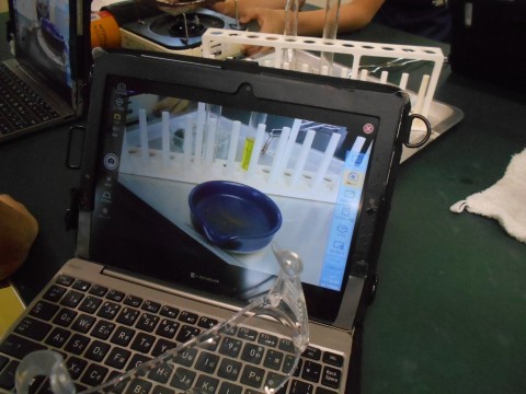コンロを使った加熱実験。目視だけでなく,パソコンの動画で記録を残しています。