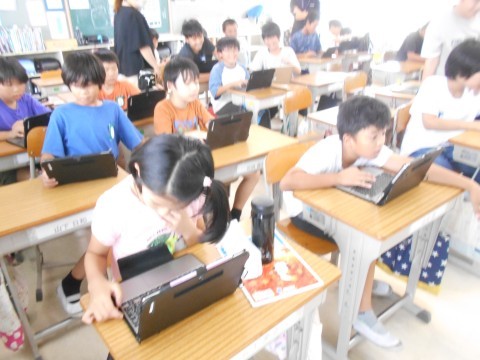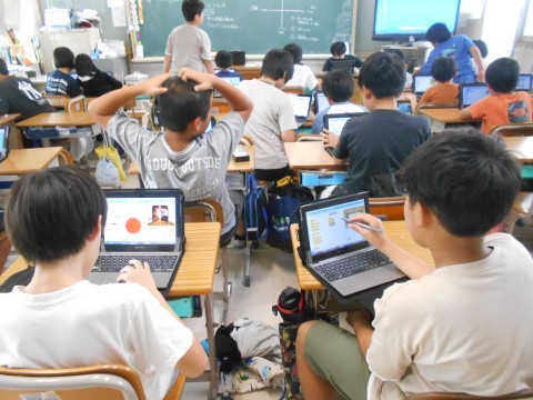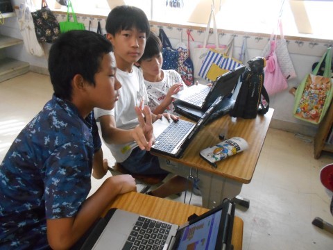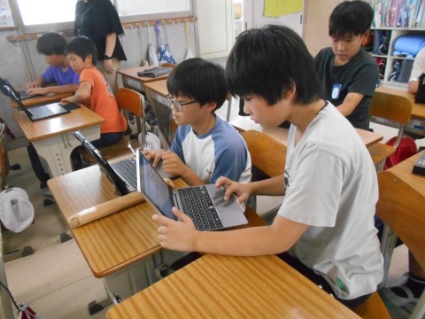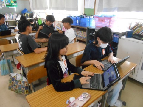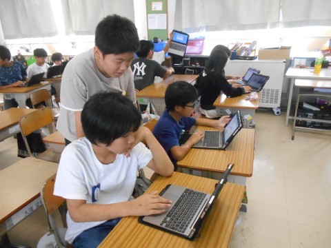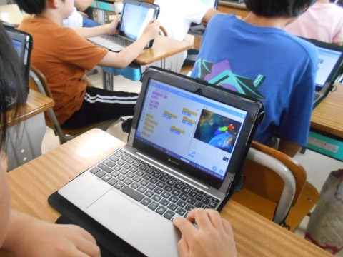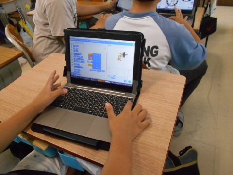 パソコンクラブの様子です。スクラッチでオリジナルゲーム作りに取り組んでいました。
