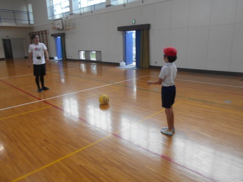 バスケットゴールにがんばって入れようとがんばっている子もいました。