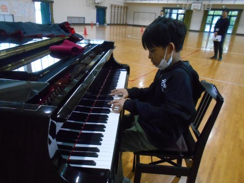 ピアノの伴奏に合わせ,美しい歌声を体育館に響かせていました。