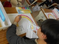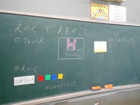 図工の時間の様子です。絵の具で絵を描こう♪です。