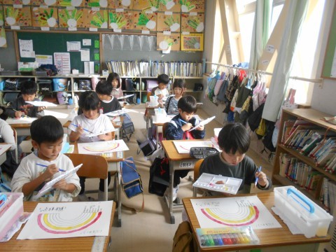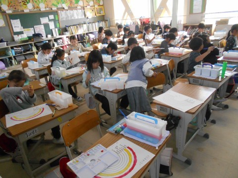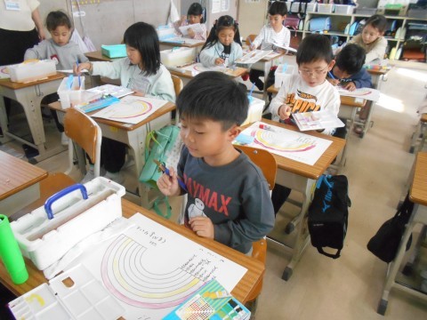 お隣のクラスでも絵の具を使った製作に取り組んでいました。
