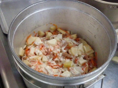 今日のスパゲティには,しいたけ・しめじ・えのきたけを使いました。