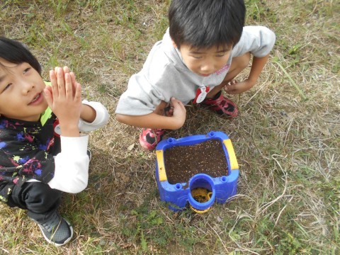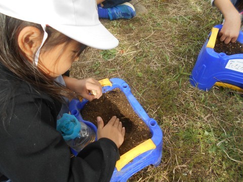 優し~く,土を撫でている姿がステキですね♪