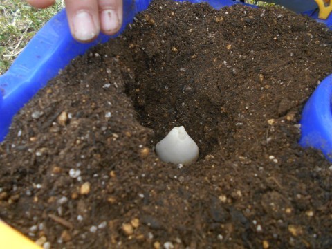 「球根さんに土の布団をかけてあげてね」という先生の声掛けもステキでした。春が楽しみにですね!