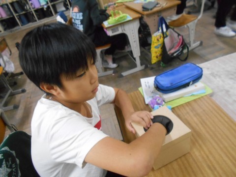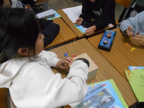 なるほど! 箱の中に入っているアルファベットを手で触って当てるゲームをしていたんですね!