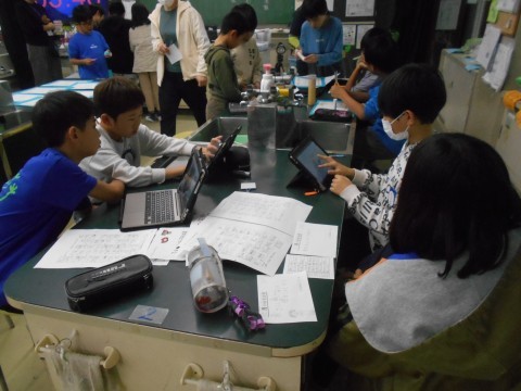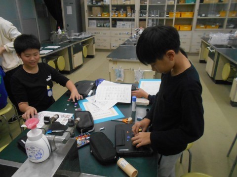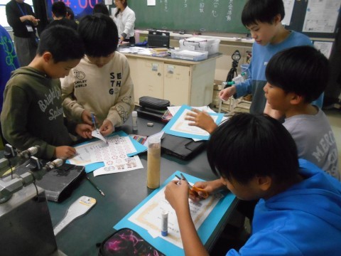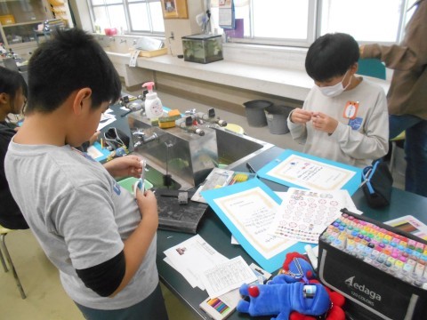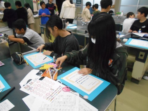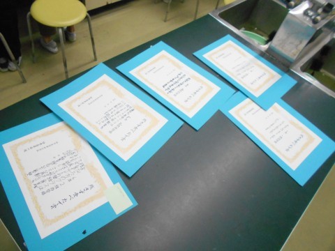 給食委員会の人たちが完食に取り組んだ学級への表彰状作りをしていました。