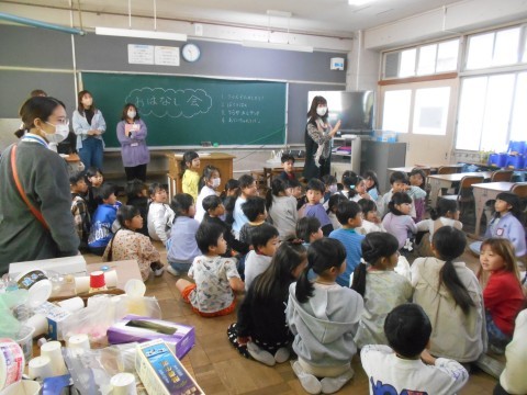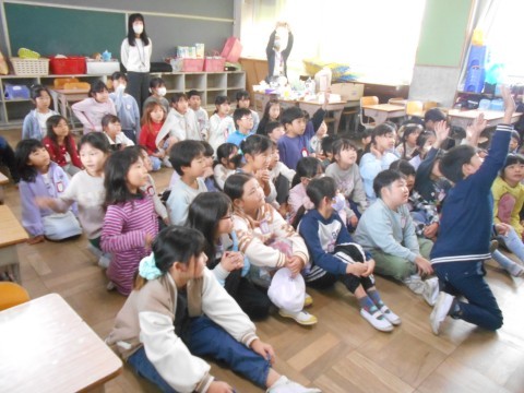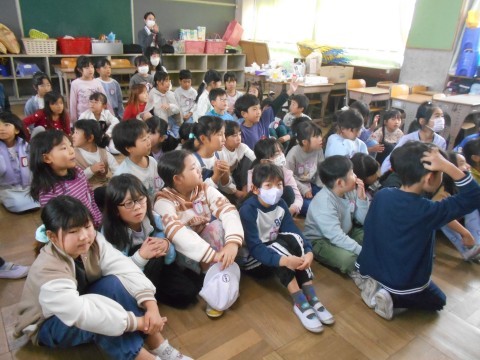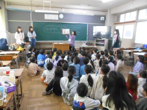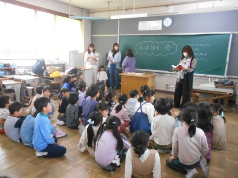 PTAの方が1・2年生に絵本の読み聞かせをしてくれました。20分休みに,たくさんの児童が集まっています。お話し会を開いてくださったPTAの皆様,ありがとうございました♪
