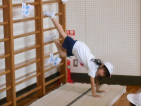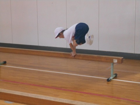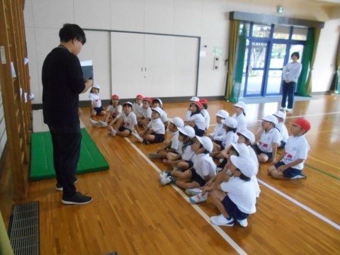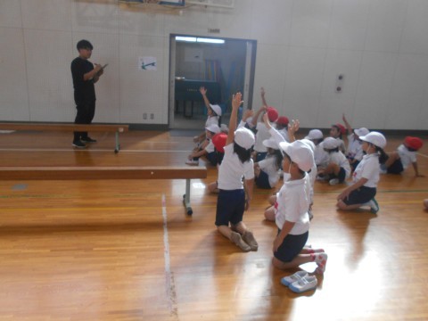「遊び方の名前をつけよう!」と,運動器具のこんな使い方,あんな使い方をみんなで発表し合っていました。