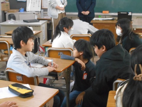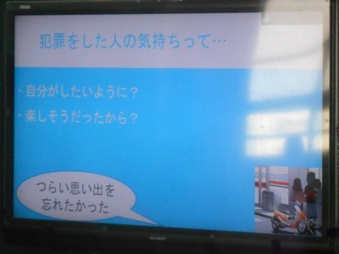 6年生のキャリア教育の時間。少年法務支援センターの方に来ていただき,「犯罪をしてしまった人の気持ち」や「なぜ止められなかったのだろうか」といったことを,グループで話し合っていました。想像することって大事ですね。