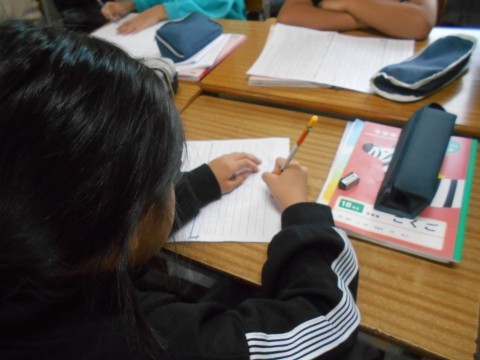 班でもらったアドバイス等をふまえ,自分の書いた要約を見直しています。