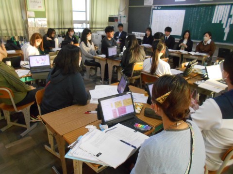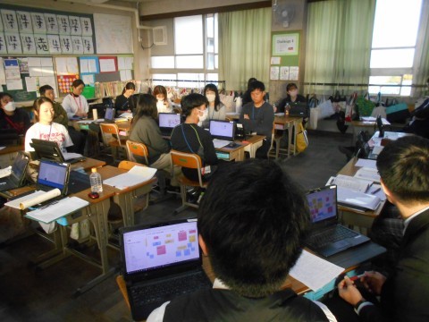 授業後の討議会で先生たちから沢山の意見や感想が出ました。研究授業に今まで取り組んでくれた4年生の先生方,お疲れさまでした♪